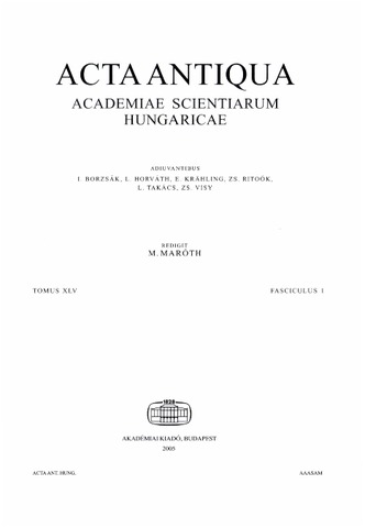 | Additional Information: | ACTA ANTIQUA TOMUS 45 (AZ MTA KLASSZIKA-FILOLÓGIAI KÖZLEMÉNYEI, 2005) Archived article-by-article in REAL too |