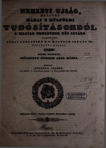 | Additional Information: | Hazai 's Külföldi Tudósítások, 1839. 2. félév (1-51. szám) |